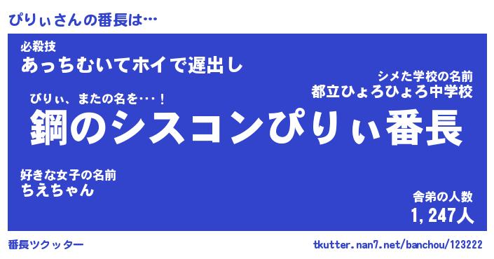 | 伝説のあだ名 | 『封印されしスナイパーぴりぃ』 |