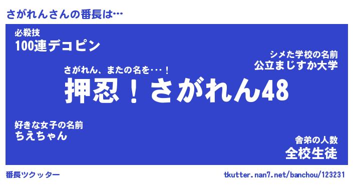 | ピコ太郎風あだ名 | 『サコ三郎』『ピサ六郎』『サガ十郎』 |