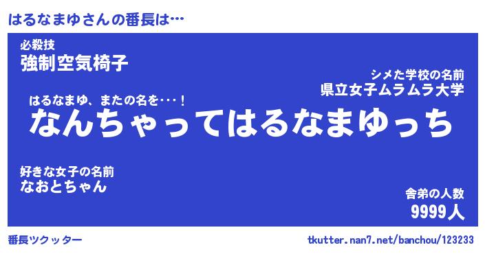 | ファンタジー風あだ名 | 『ハルフェル』『エターナルハルナマユー』 |