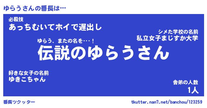 | 伝説のあだ名 | 『伝説のスナイパーゆらう』 |