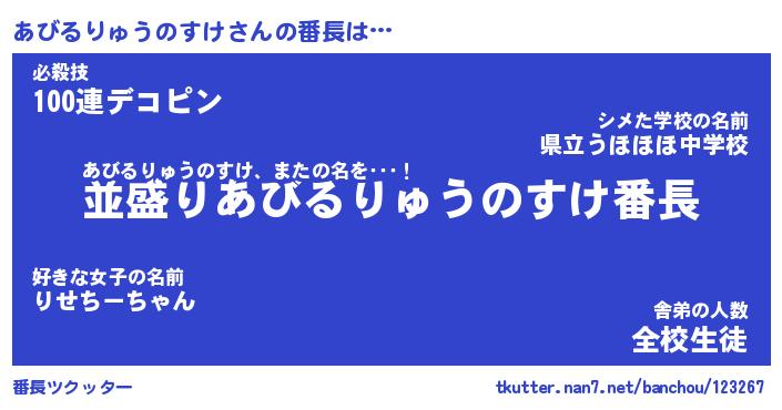 | 肩書あだ名 | 『あびるりゅうのすけ社長』 |