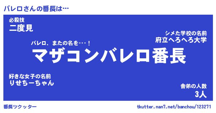 | ヒーロー風カッコイイあだ名 | 『スーパーバレロ』『ウルトラバレロマン』 |