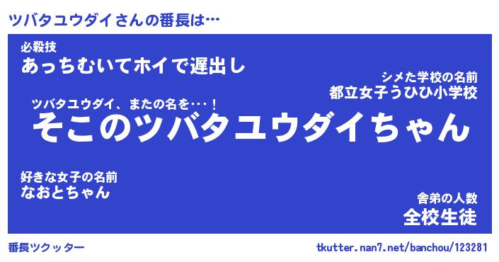 | 恥ずかしいあだ名 | 『プリティーツバタユウダイ』『ツバちん』 |