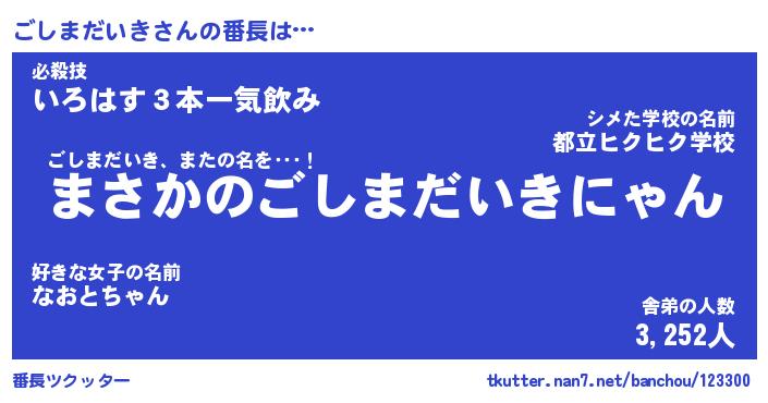 | ピコ太郎風あだ名 | 『ゴコ五郎』『ピゴ一郎』『ゴシ十郎』 |