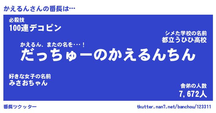 | 意味不明あだ名 | 『ペロリンかえるん』『永久保存かえるん』 |