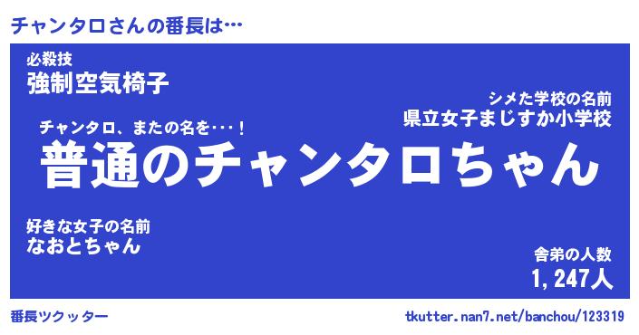 | ヒーロー風カッコイイあだ名 | 『スーパーチャンタロ』『暗黒騎士チャ』 |