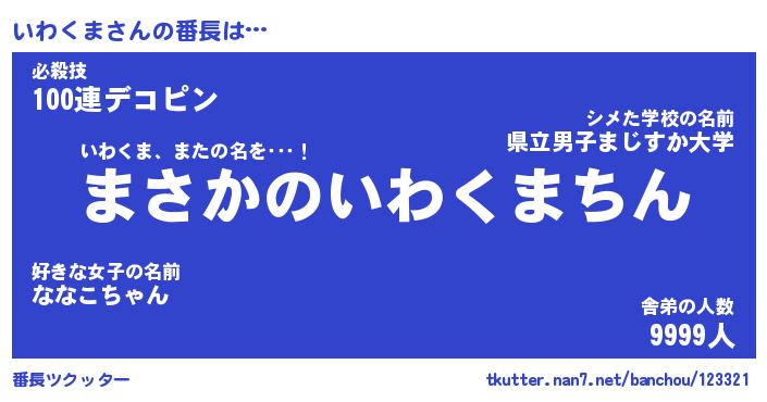 | ファンタジー風あだ名 | 『イワフェル』『エターナルイワクマー』 |
