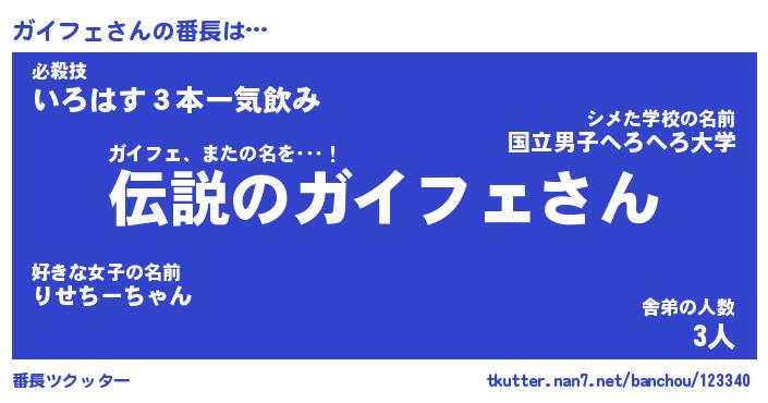 | 意味不明あだ名 | 『ペロリンガイフェ』『永久保存ガイフェ』 |
