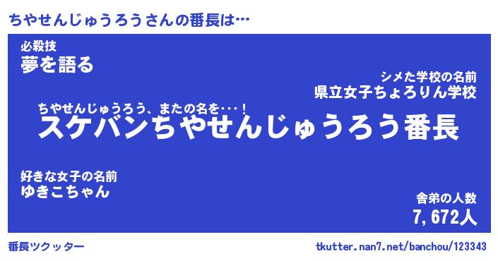 | 恥ずかしいあだ名 | 『プリティーちやせんじゅうろう』 |