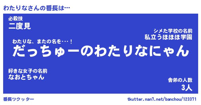 | 意味不明あだ名 | 『ペロリンわたりな』『永久保存わたりな』 |