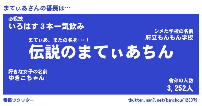 | 意味不明あだ名 | 『ペロリンまてぃあ』『永久保存まてぃあ』 |