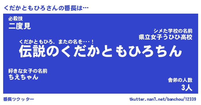 | 男性向けラノベタイトル風あだ名 | 『くだかともひろの憂鬱』 |