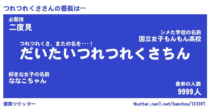 | ヒーロー風カッコイイあだ名 | 『スーパーツレツレクサ』『天弓騎士ツレ』 |