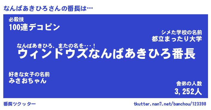| 伝説のあだ名 | 『伝説のスナイパーなんばあきひろ』 |