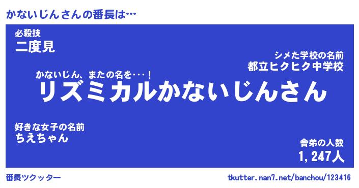 | 肩書あだ名 | 『かないじん社長』『かないじん総理大臣』 |