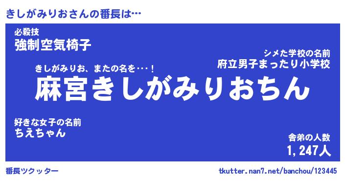 | 欧米人風あだ名 | 『マイケルきしがみりお』 |