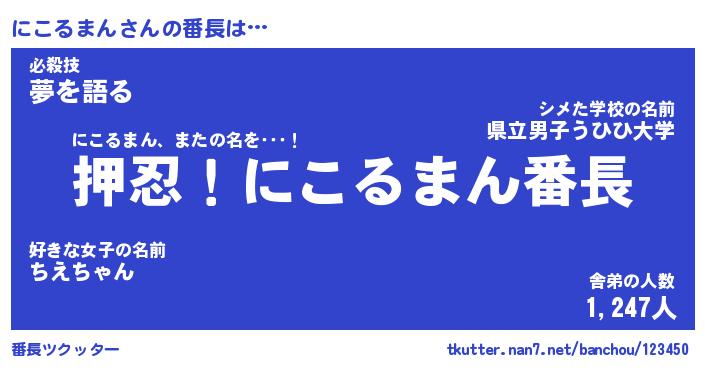 | 肩書あだ名 | 『にこるまん社長令嬢』『にこるまん班長』 |