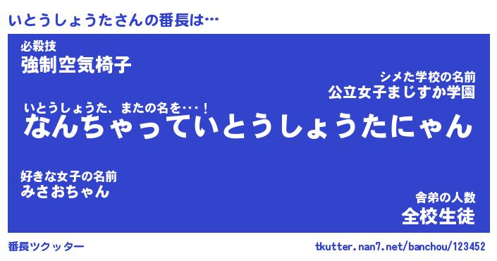 | ヒーロー風カッコイイあだ名 | 『スーパーイトウショウタ』 |