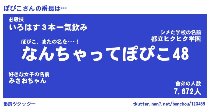 | 意味不明あだ名 | 『ペロリンぽぴこ』『ぽぴこフォーエバー』 |