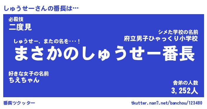 | ヒーロー風カッコイイあだ名 | 『スーパーシュウセー』『幻影騎士シュ』 |