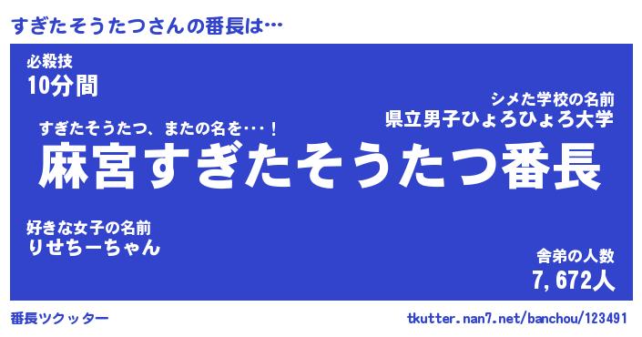 | ヒーロー風カッコイイあだ名 | 『スーパースギタソウタツ』 |
