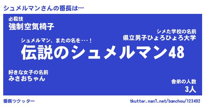 | 肩書あだ名 | 『シュメルマン店長』『シュメルマン団長』 |