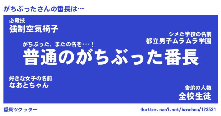 | ヘコむあだ名 | 『がちにー』『牛乳』『がち太郎』 |