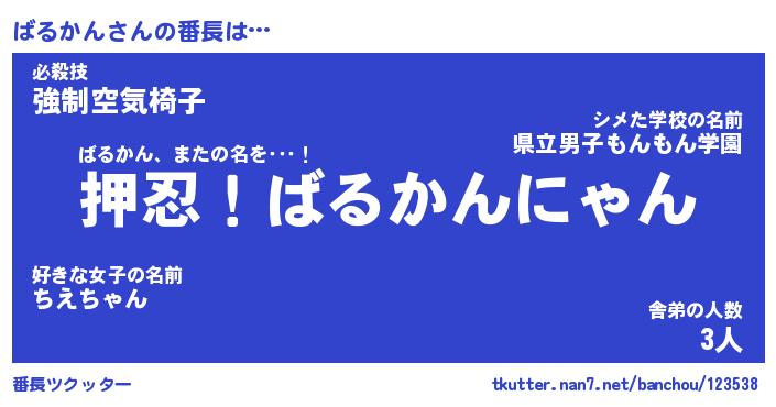 | 意味不明あだ名 | 『ペロリンばるかん』『永久保存ばるかん』 |