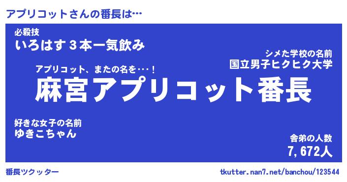 | 肩書あだ名 | 『アプリコット店長』『アプリコット団長』 |