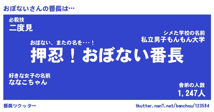 | 意味不明あだ名 | 『ペロリンおぼない』『永久保存おぼない』 |