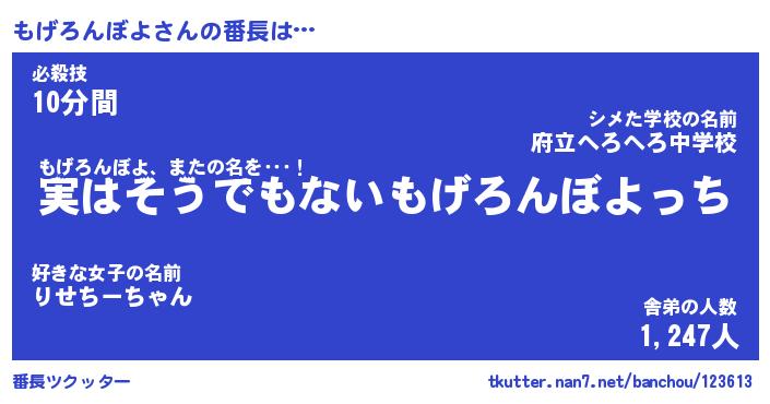| 肩書あだ名 | 『もげろんぼよ社長』『もげろんぼよ班長』 |
