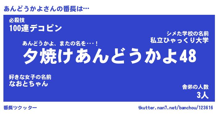 | 伝説のあだ名 | 『封印されしスナイパーあんどうかよ』 |
