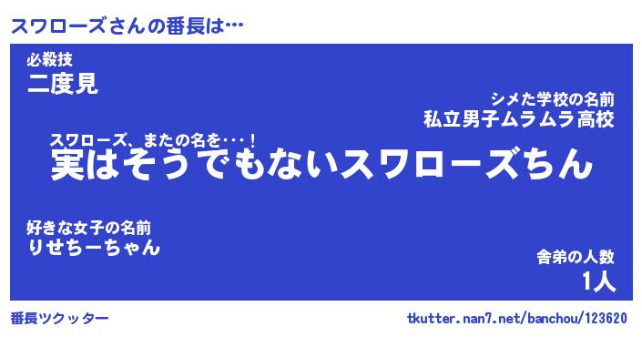 | ポケモン風あだ名 | 『スワチュウ』『スワロダネ』 |
