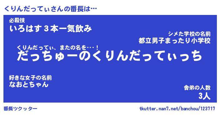 | ピコ太郎風あだ名 | 『クコ史郎』『ピク太郎』『クリ三郎』 |