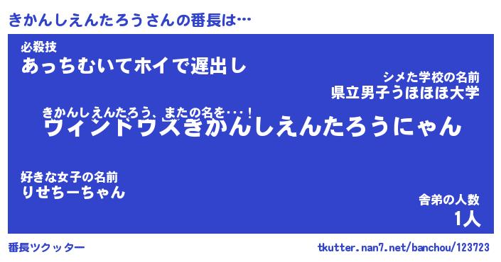 | 男性向けラノベタイトル風あだ名 | 『きかんしえんたろうの憂鬱』 |