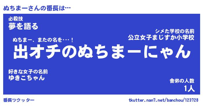 | ピコ太郎風あだ名 | 『ヌコ太郎』『ピヌ四郎』『ヌチ次郎』 |