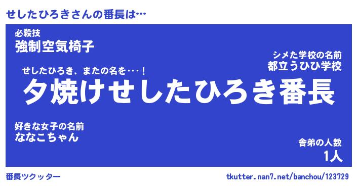 | 伝説のあだ名 | 『封印されしスナイパーせしたひろき』 |