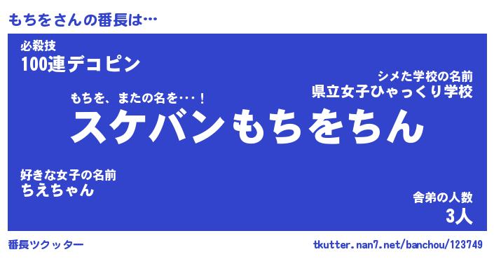 | ファンタジー風あだ名 | 『モチフェル』『エターナルモチヲー』 |