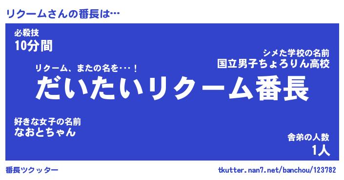 | 意味不明あだ名 | 『ペロリンリクーム』『永久保存リクーム』 |