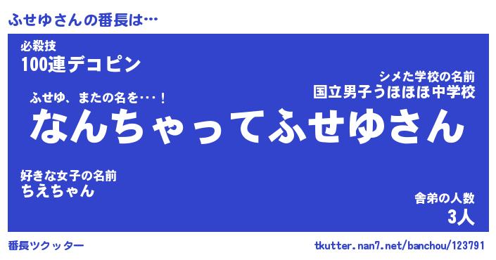 | ヒーロー風カッコイイあだ名 | 『スーパーフセユ』『ウルトラふせゆマン』 |