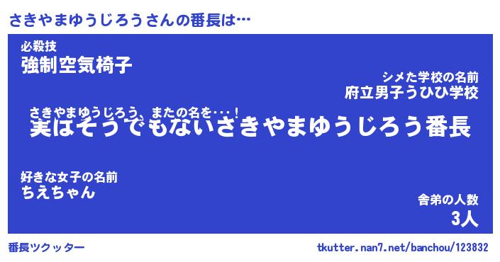 | 伝説のあだ名 | 『封印されしスナイパーさきやまゆうじろう』 |