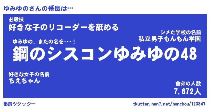 | 意味不明あだ名 | 『ペロリンゆみゆの』『永久保存ゆみゆの』 |
