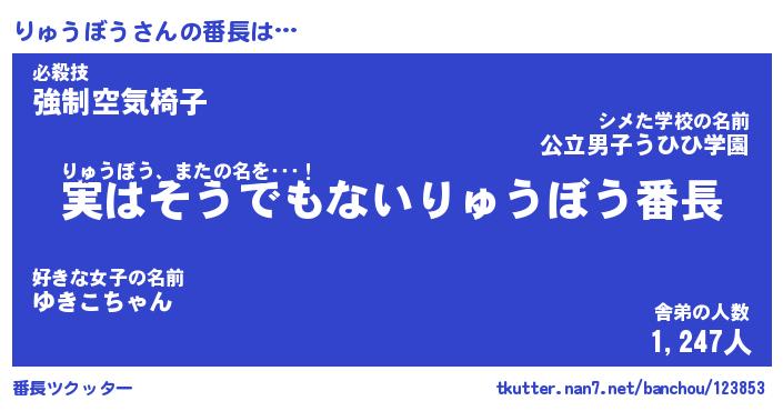 | 2回繰り返すあだ名 | 『りゅりゅ』『りりゅゅ』『いらいら』 |