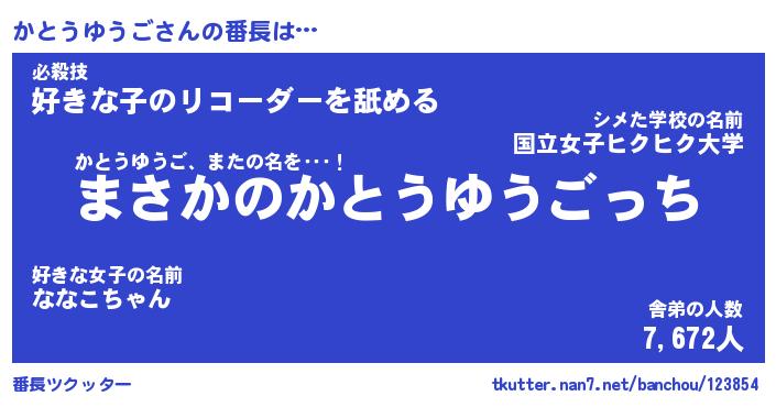 | ヒーロー風カッコイイあだ名 | 『スーパーカトウユウゴ』『天弓騎士カト』 |