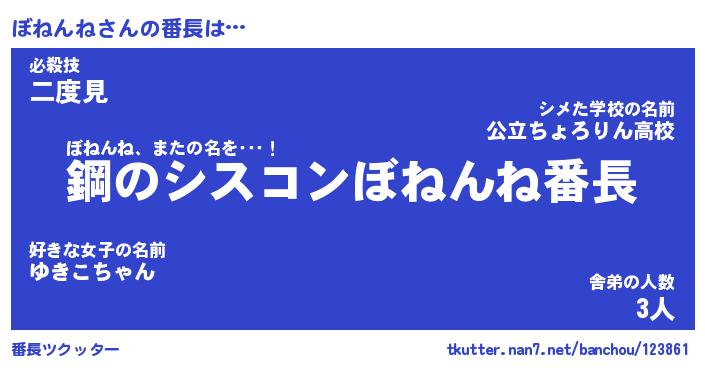 | 2回繰り返すあだ名 | 『ぼねぼね』『ぼぼねね』『ねちねち』 |