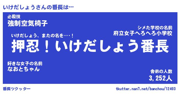 | 2回繰り返すあだ名 | 『いけいけ』『いいけけ』『いじいじ』 |