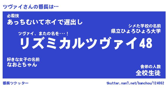| ヘコむあだ名 | 『ツヴにゅー』『牛乳』『ツヴっぺ』 |