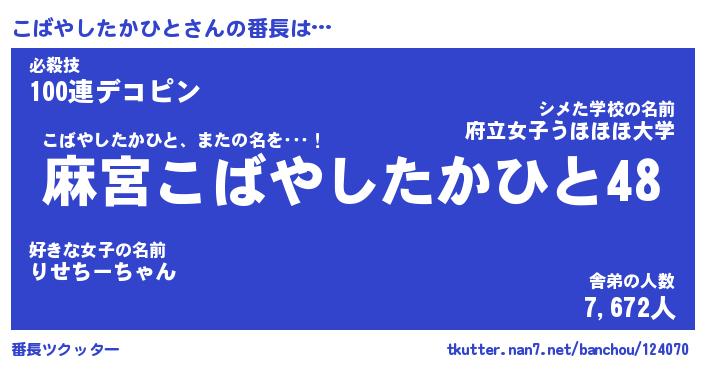 | ヘコむあだ名 | 『こばもー』『牛乳』『こばっ子』 |