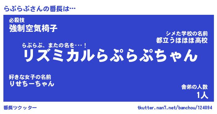 | ヘコむあだ名 | 『らぷもー』『牛乳』『らぷ太郎』 |