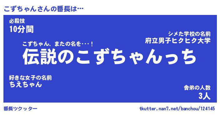 | 2回繰り返すあだ名 | 『こずこず』『ここずず』『あんあん』 |